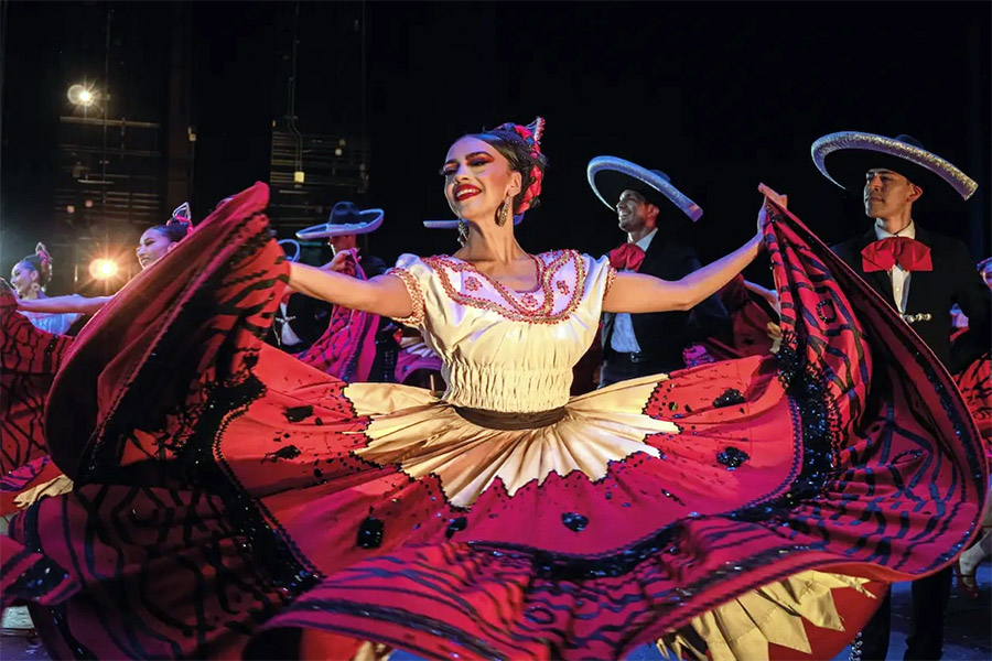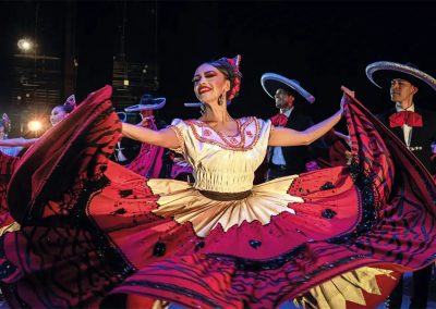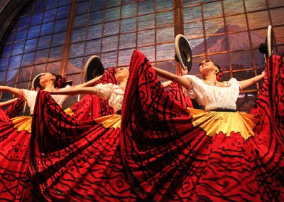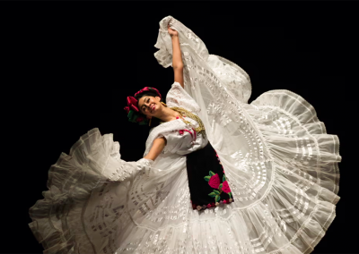 El Ballet Folklórico en Bellas Artes es una representación vibrante de la diversidad cultural de México, combinando danzas tradicionales, vestuarios coloridos y música en vivo. A través de sus coreografías, se celebra la riqueza de las costumbres y tradiciones de distintas regiones del país. Cada presentación es un viaje visual y sonoro que invita a los espectadores a apreciar la herencia cultural mexicana. Este ballet se ha convertido en un símbolo del arte popular y la identidad nacional.