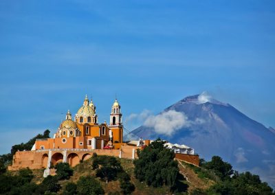 Posteriormente seremos trasladados a la ciudad de Cholula, en donde visitaremos el basamento piramidal más grande de América, constituido por 7 cuerpos, a través de un túnel arqueológico. Posteriormente a ello se tendrá el traslado a la ciudad de Puebla “La Ciudad de los Ángeles”, dirigiéndose directamente a tomar el almuerzo (no incluido). Al término del mismo, iniciarán un recorrido peatonal por el bello centro histórico de esta bellísima ciudad, que guarda la mayor cantidad de construcciones del siglo XVIII de México. Caminarán por su plaza de armas adentrándose por impresionante Catedral, visitándola. Posteriormente serán trasladados a la Capilla del Rosario que se aloja en la iglesia de Santo Domingo, la cual está fina y bellamente decorada con hoja de oro. A continuación serán trasladados al Museo Religioso de Santa Mónica, que está alojado en el exconvento del mismo nombre y que guarda objetos religiosos. Se dará tiempo libre.