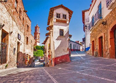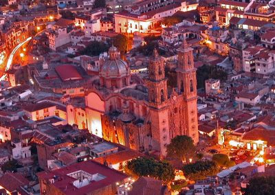 Los clientes serán transportados por autopista a la ciudad de Cuernavaca, la llamada “Ciudad de la Eterna Primavera”, en donde se llegará y visitaremos la iglesia principal así como podremos hacer uso de servicios sanitarios o tomar un refrigerio. Posteriormente se abordará el transporte y serán trasladados a Taxco “La ciudad de la Plata”, a donde se llegará a una de sus múltiples platerías, en donde les será ofrecido un cóctel, mientras escuchan una explicación de los procesos de producción y distinción de este noble metal, esta parada llevará 30 minutos. Continuaremos con una caminata hacia el centro donde podremos disfrutar del almuerzo (por cuenta del cliente). Posteriormente conoceremos de Taxco sus calles empinadas y plazas empedradas, y visitaremos la bella iglesia de Santa Prisca, de arquitectura barroca. Tiempo libre.