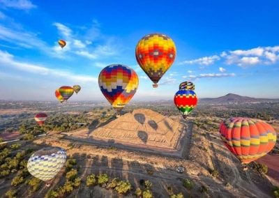 Cita en el lobby del hotel a las 05:00 am abordaremos la unidad que nos llevara al globo puerto en la zona de Teotihuacan, al llegar se les dará una breve explicación del vuelo e iniciaremos nuestra aventura por los aires, al termino se hará un brindis y se entregara el certificado de vuelo y regresaremos a la Ciudad de México.